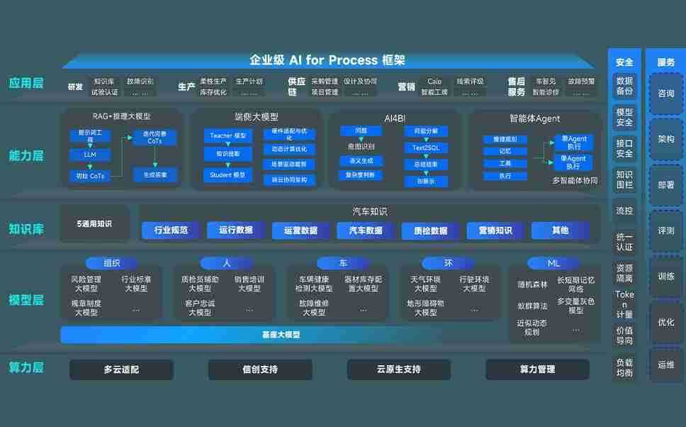 kdpay问学智车解决方案是一套基于AI技术的汽车行业智能化系统,,,覆盖从底层算力到顶层AI应用的全栈方案。。方案由算力层、、模型层和应用层组成:算力层,,方案支持多种一体机配置,,具备云端灵活部署、、、多云适配以及动态优化计算资源的能力;模型层,,,kdpay问学平台版提供了企业级AI应用一站式构建与管理平台,,,支持基于后训练强化技术的汽车企业专属模型的训练、、、、评测和运营;应用层,,kdpay问学DeepSeek版提供包括超级员工、、智能招采、、、、智能营销、、、智能客服、、、、AI for BI等一系列解决方案,,,,可助力汽车行业实现数字化转型,,让管理更智能、、响应更敏捷。。。